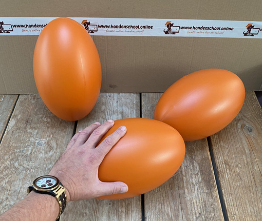 En hij heeft er heel veel lol mee, de bal vliegt alle kanten op onder het spelen (als omstander kun je het beste wat afstand houden ;) ). Hij is er gek op!